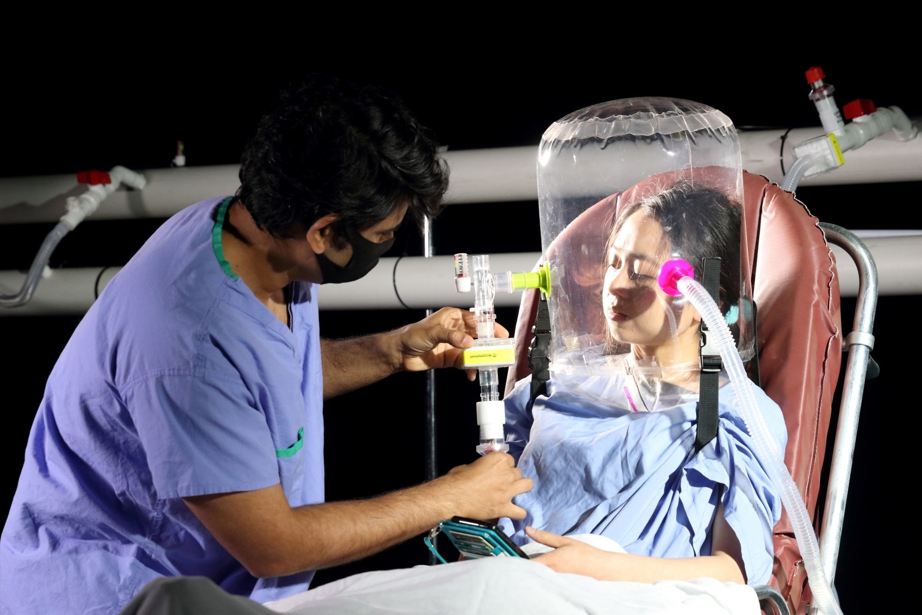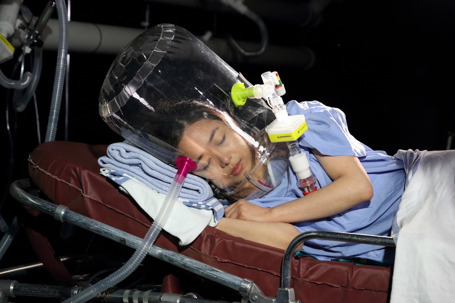 This non-powered ventilation device encloses a patient’s head to contain oxygen delivered to the patient for breathing. Optimized for comfort and safety, the Bubble Helmet is the first flexible, single material helmet in the world.